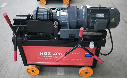 鋼筋滾絲機最常見的就是40型的滾絲機,這里主要介紹40型鋼筋滾絲機。GS-40型鋼筋直螺紋滾絲機可一次裝夾完成從剝肋到滾軋螺紋的加工過程。加工螺紋的牙形飽滿,尺寸精度高,機械強度高。 既可加工正扣螺紋,也可加工反扣螺紋。操作簡單、結(jié)構(gòu)緊湊、工作可靠,具有獨特的刀具自動開合機構(gòu)。 可加工直徑范圍為16-40mm的HRB335和HRB400級鋼筋。