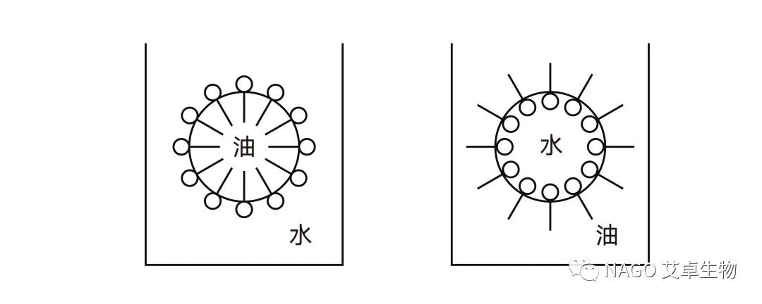 兩種互不相溶的液相,如油相和水相,以微小粒子(液滴或液晶)分散在另一相中所形成的體系稱為乳狀液,也稱為乳化體。在乳狀液中以微小粒子或液滴形式存在的那一相稱為分散相,或內(nèi)相;而包圍在它外面的液體稱為分散介質(zhì),或外相、連續(xù)相。將水和油混合時,能夠形成兩種類型乳狀液。一種是油分散在水中,油是分散相,水是分散介質(zhì),形成的是水包油(O/W)型乳狀液,相反形成的是油包水(W/O)型乳狀液。